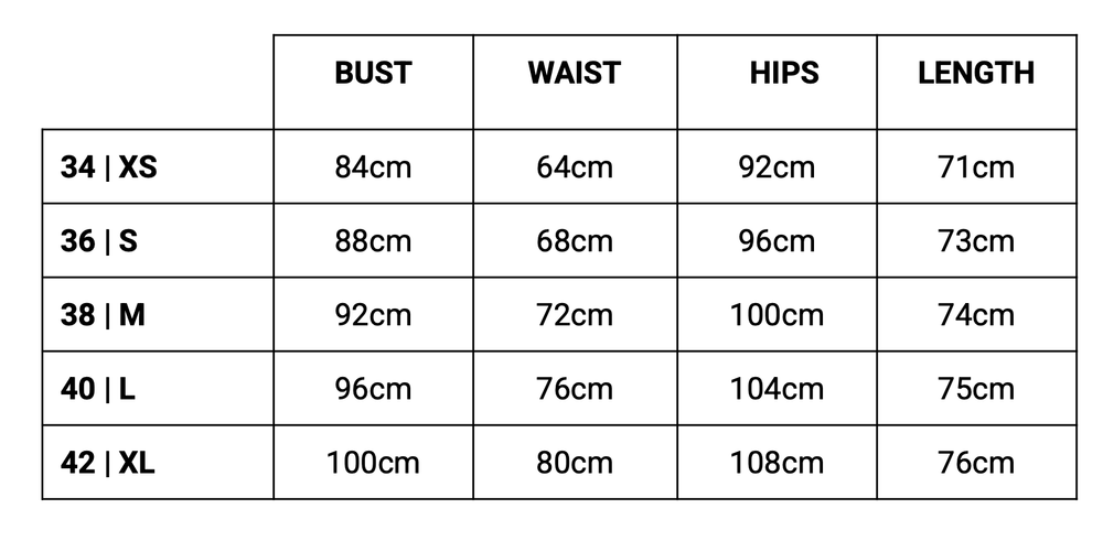 | EU SIZE | XXS | XS | S | M | L | XL |