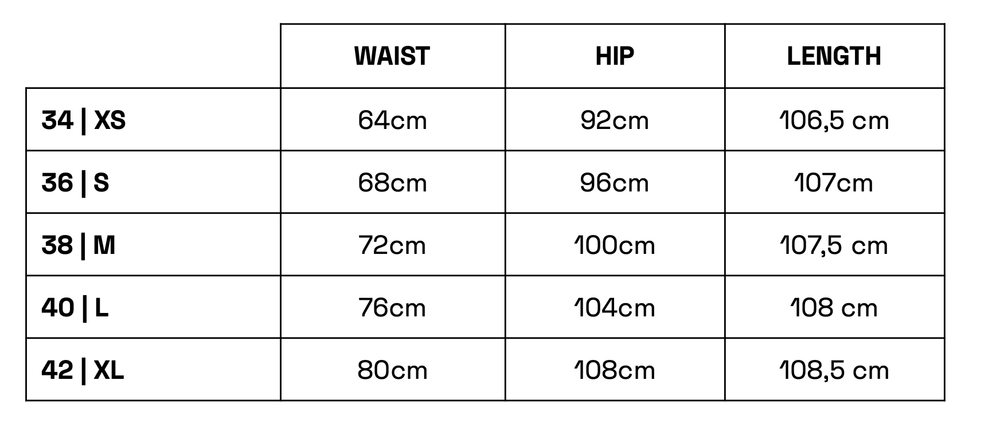 | Waist | Hip | Length | Leg | |