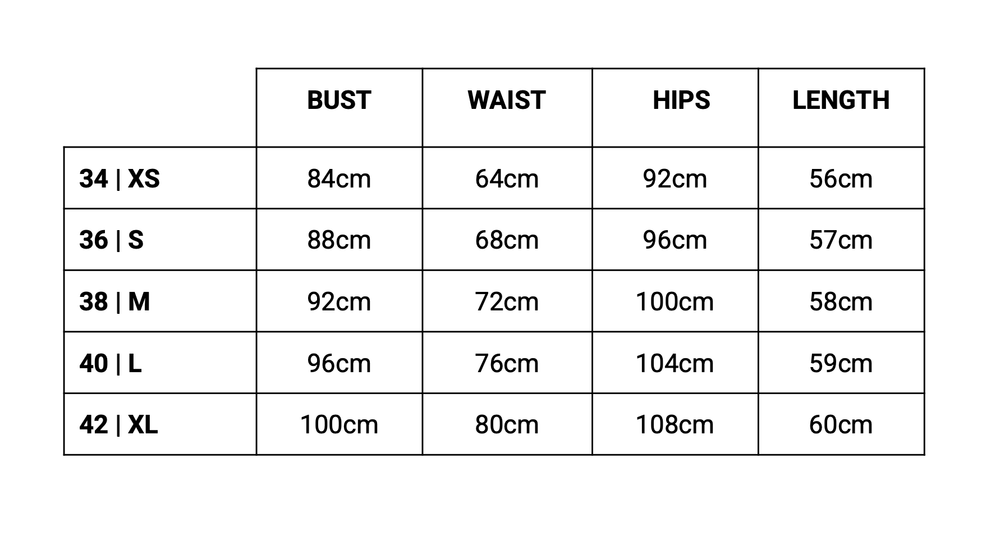 | EU SIZE | XXS | XS | S | M | L | XL |