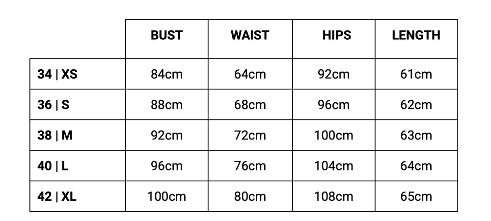 | EU SIZE | XXS | XS | S | M | L | XL |