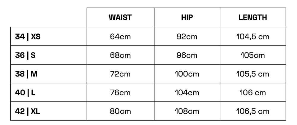 | Waist | Hip | Length | Leg | |