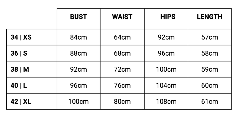 | EU SIZE | XXS | XS | S | M | L | XL |