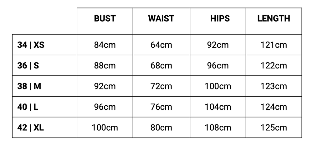 | EU SIZE | XXS | XS | S | M | L | XL |