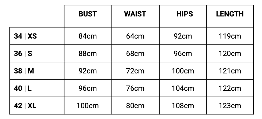 | EU SIZE | XXS | XS | S | M | L | XL |