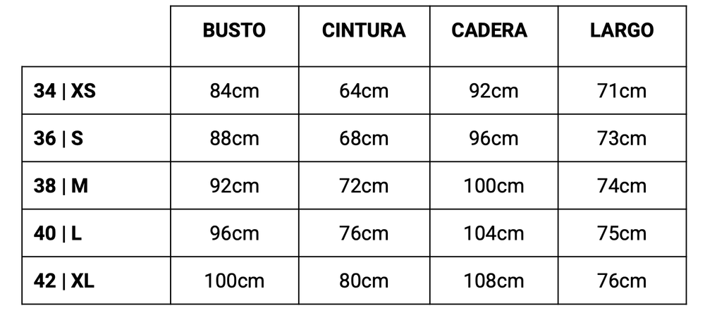 | Ancho del pecho | Ancho del dobladillo | Longitud del cuerpo | Ancho de manga | Longitud de la manga | Ancho del puño | |
