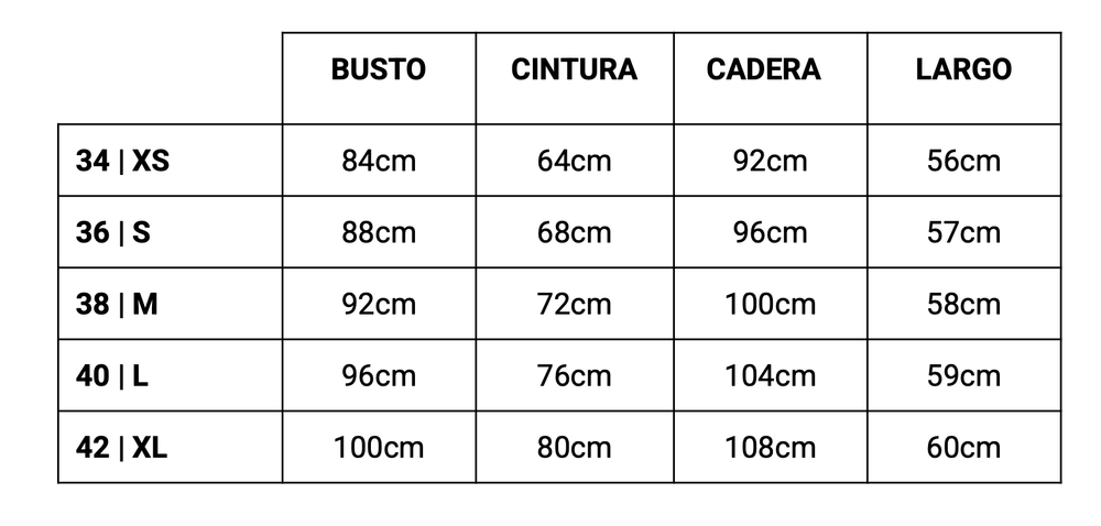 | Ancho del pecho | Ancho inferior | Longitud del cuerpo | Ancho de manga | Longitud de la manga | Ancho del puño | |