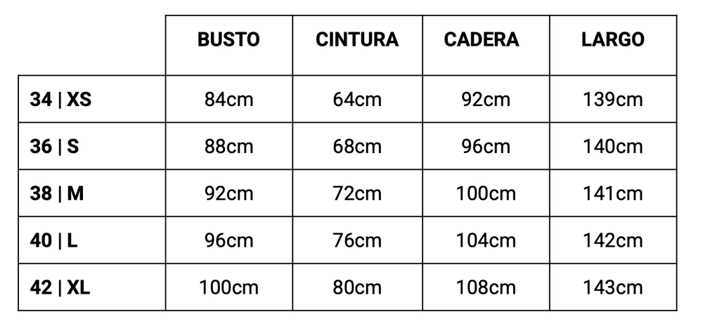 | Ancho del pecho | Ancho de cintura | Ancho de cadera | Longitud del cuerpo | Longitud de la manga | Ancho de manga | Ancho del puño | |