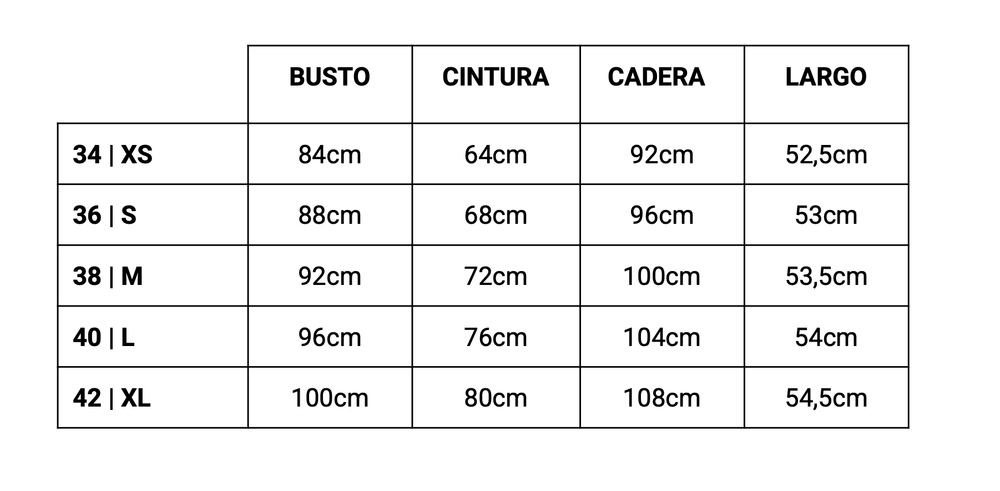 | EU SIZE | XXS | XS | S | M | L | XL |