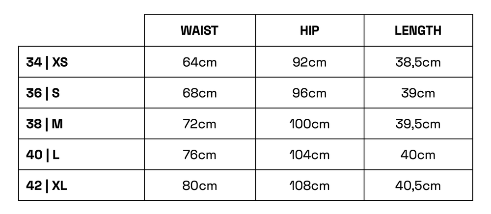 | EU SIZE | XXS | XS | S | M | L | XL |