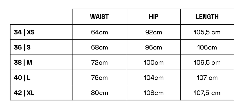 | EU SIZE | XXS | XS | S | M | L | XL |