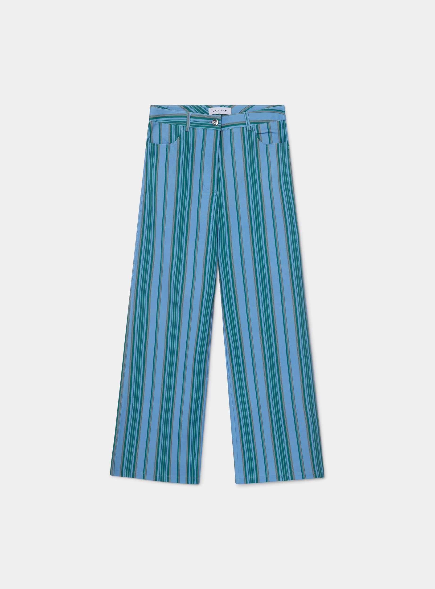 Low-rise pants with two front pockets. Straight cut. Fly with front zipper and metal button