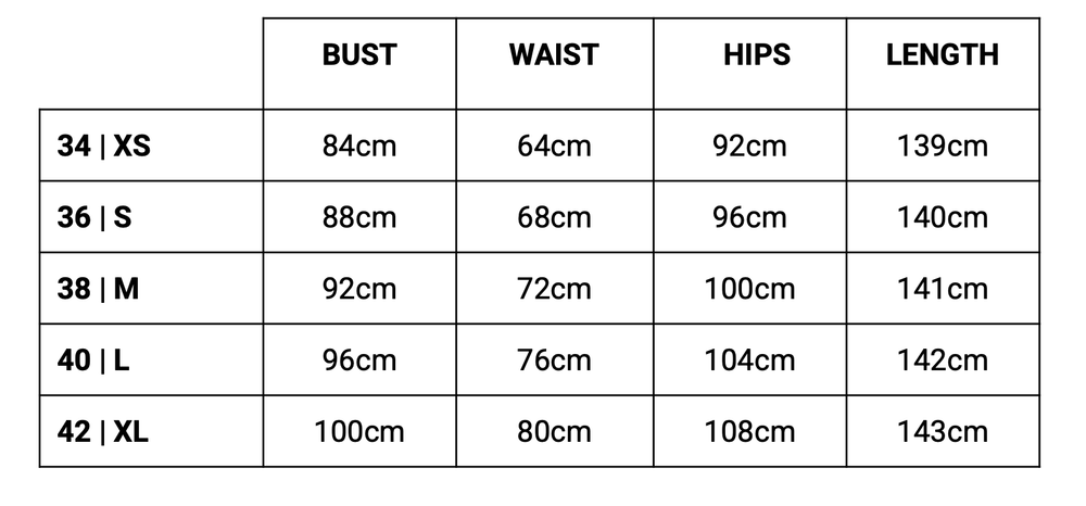 | EU SIZE | XXS | XS | S | M | L | XL |