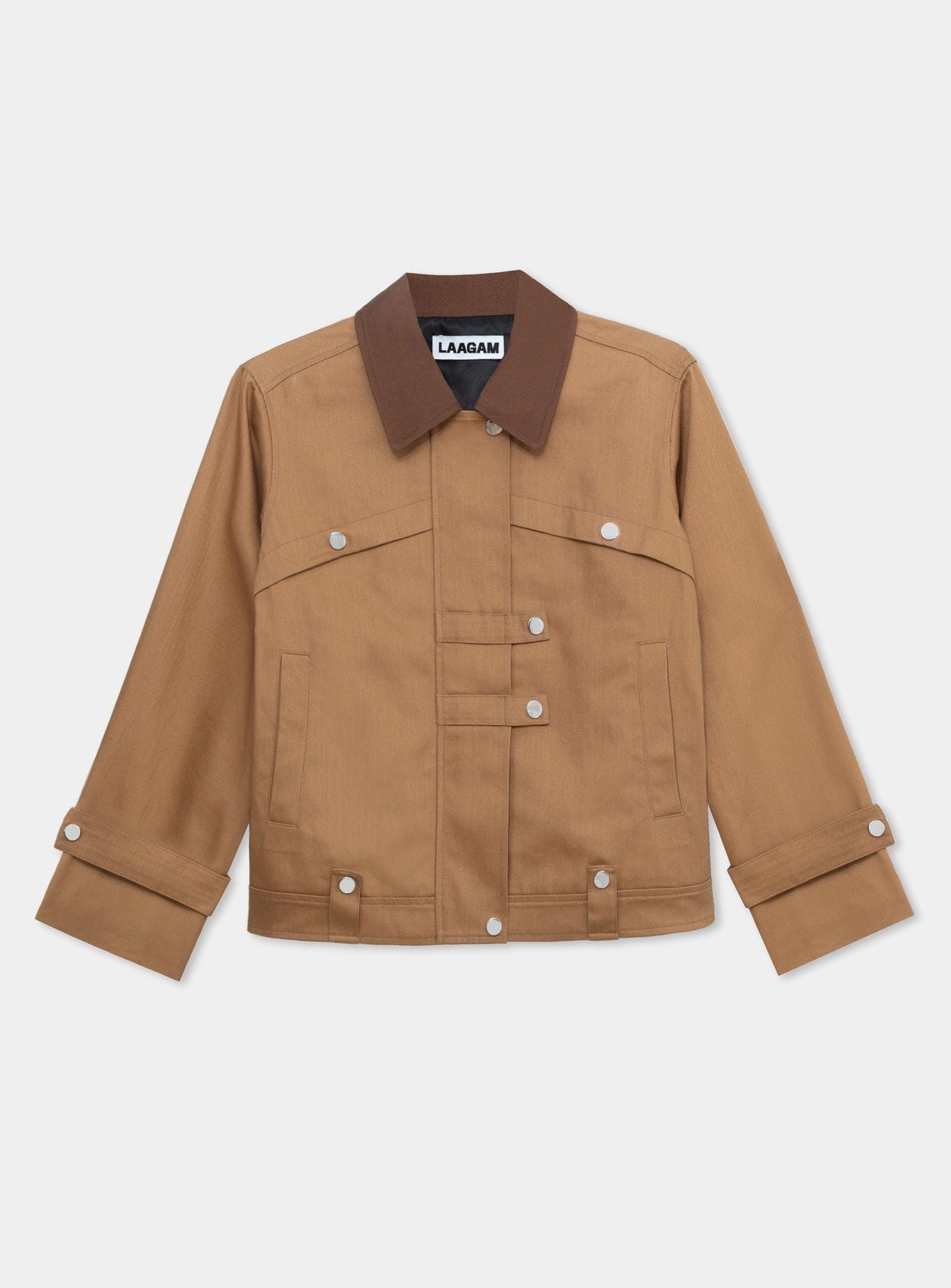 Structured jacket. Long sleeves with adjustable cuff tabs.