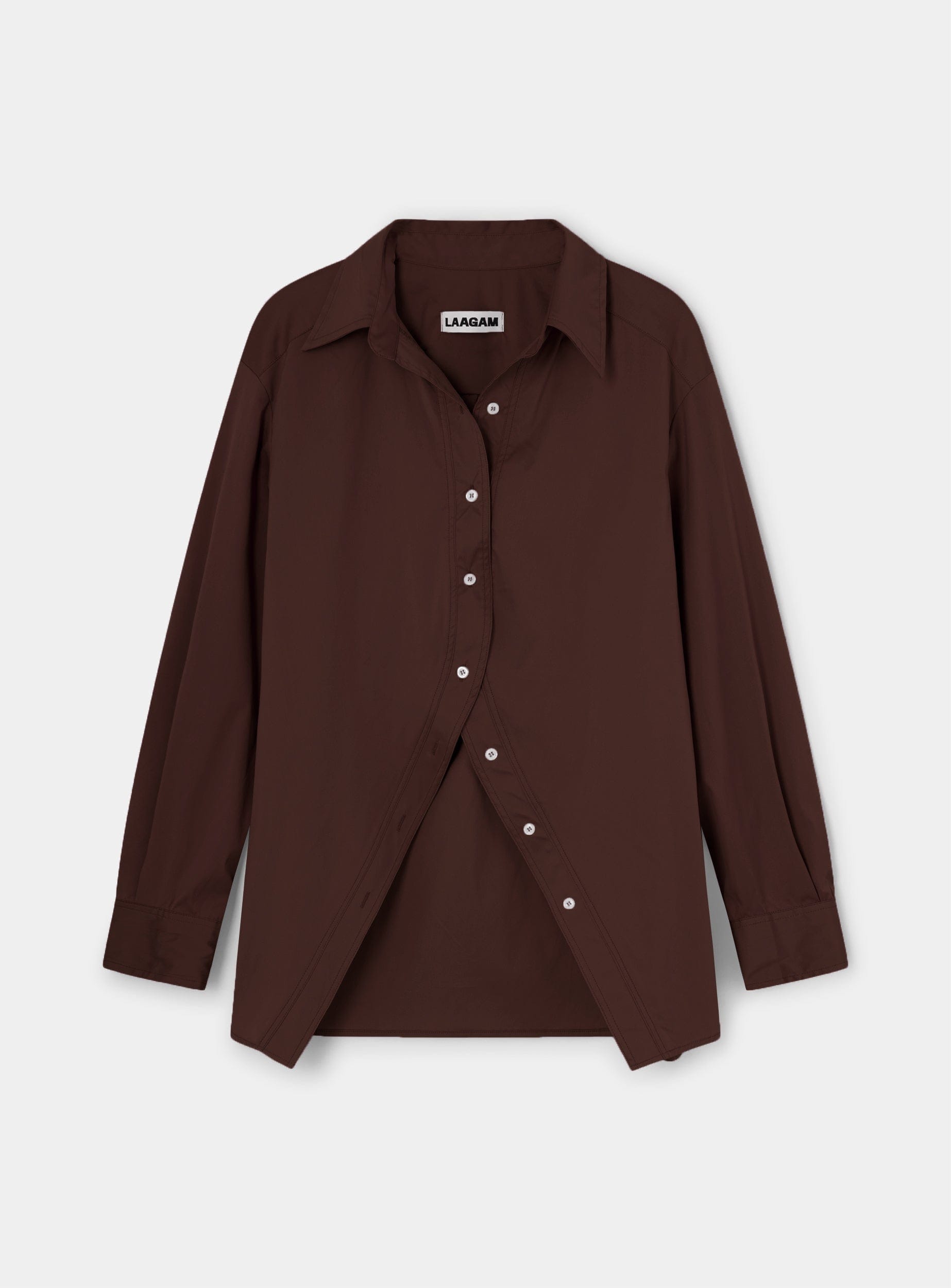 Multi-position cotton shirt. Oversize fit. Lapel collar, french cuffs and dropped shoulders. Asymmetric front button closure.
