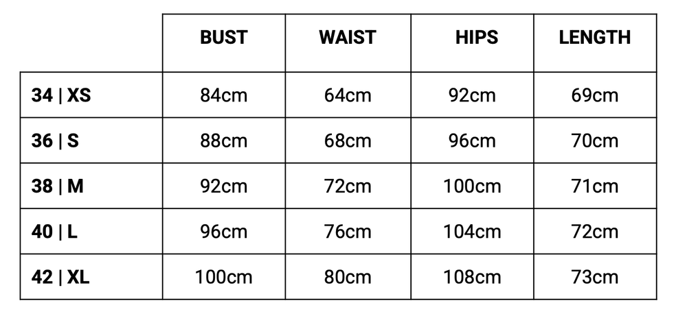 | EU SIZE | XXS | XS | S | M | L | XL |