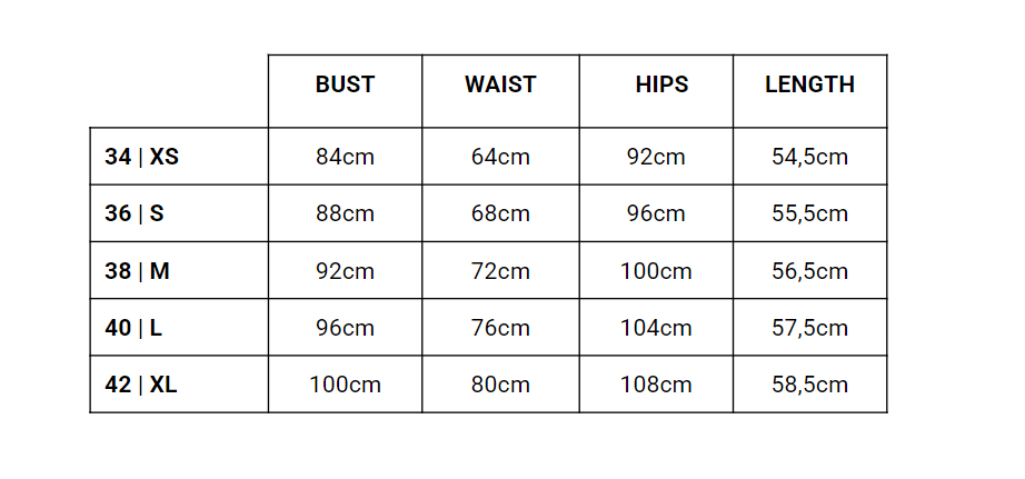 | EU SIZE | XXS | XS | S | M | L | XL |
