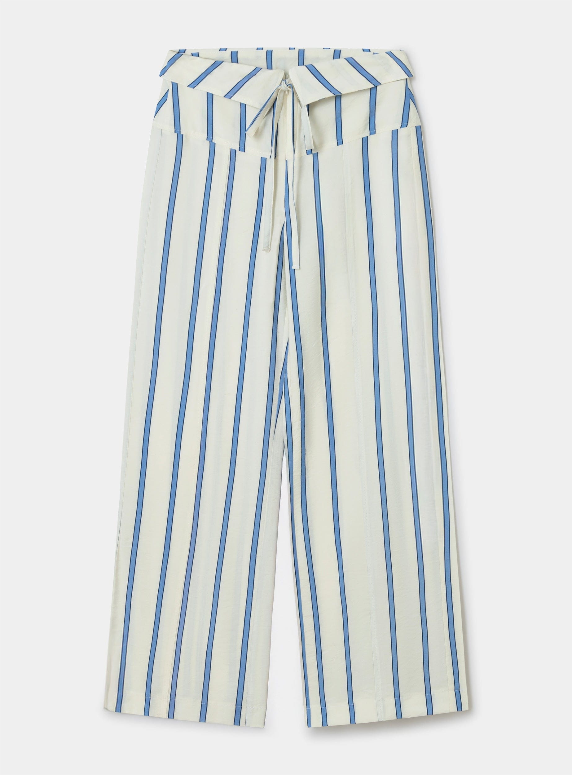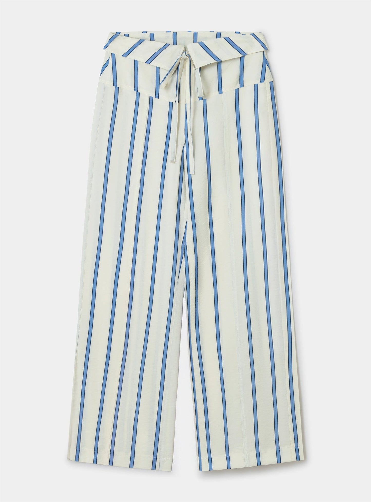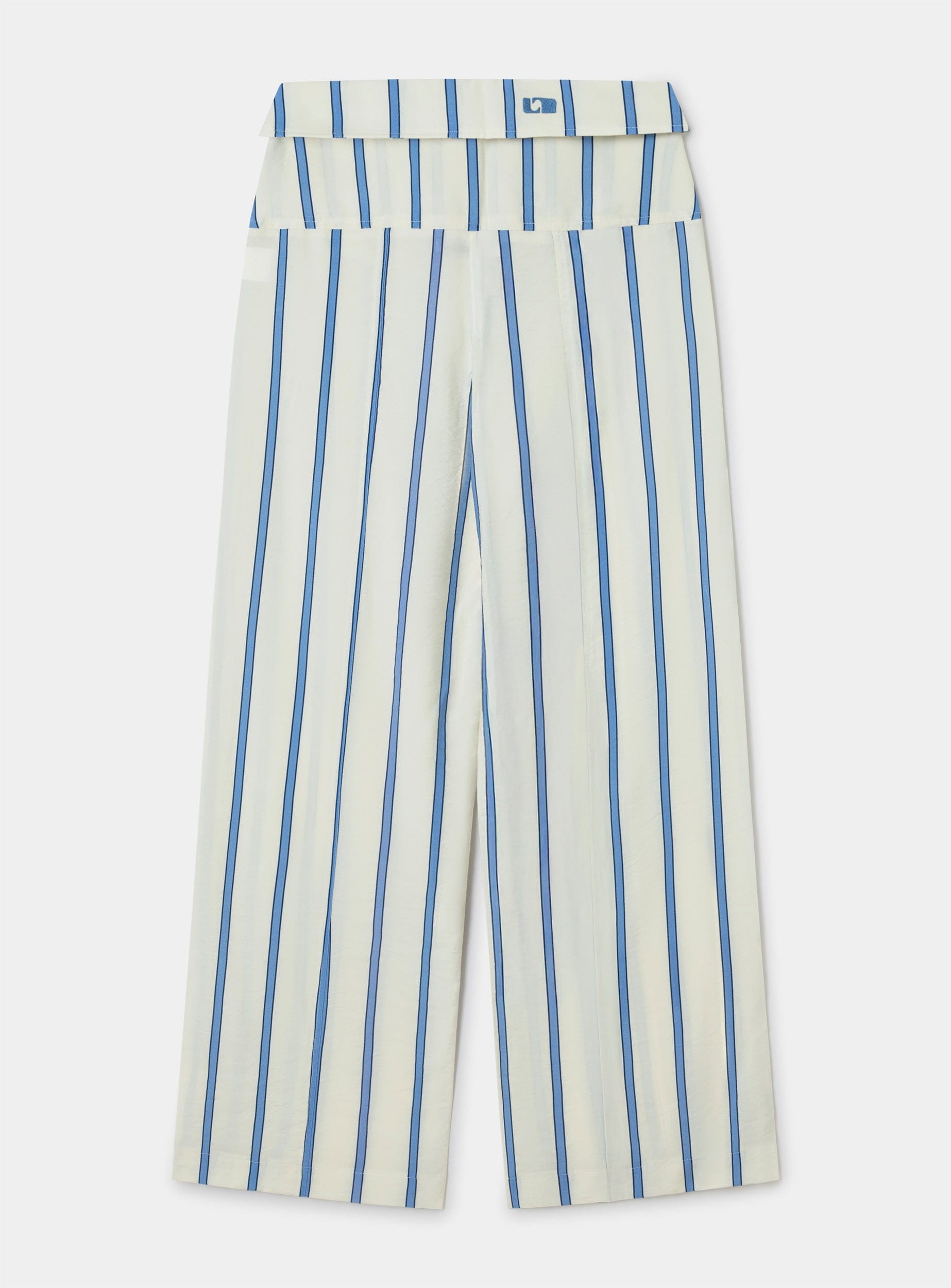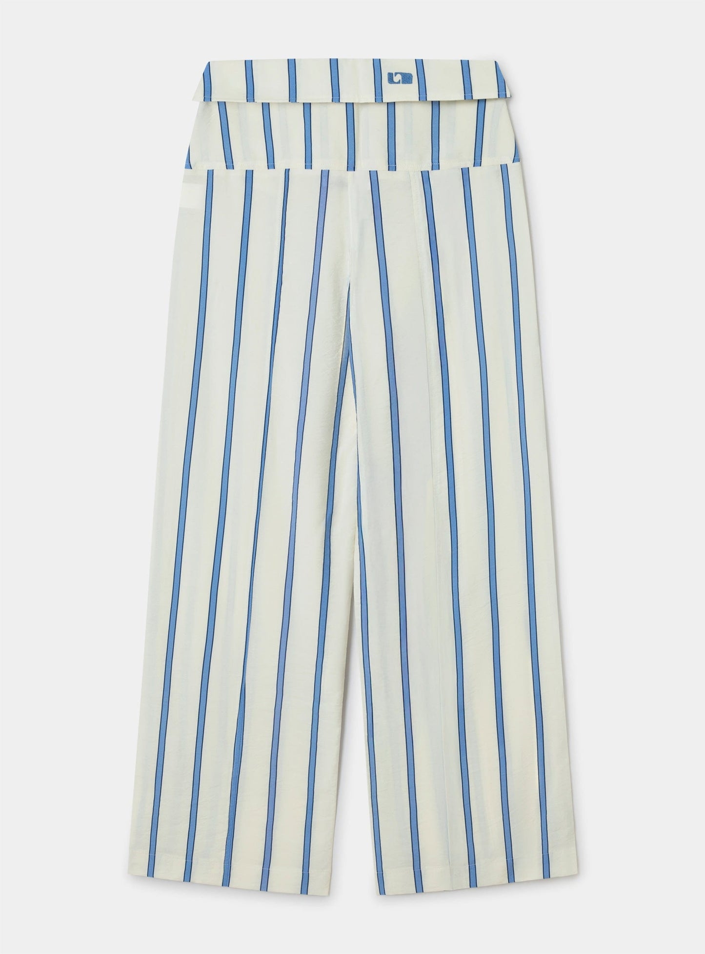 Mid-rise striped pants with a double waistband. Straight cut and relaxed fit for all-day comfort. Invisible front zipper with ribbon detail.