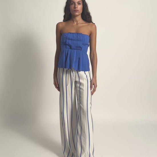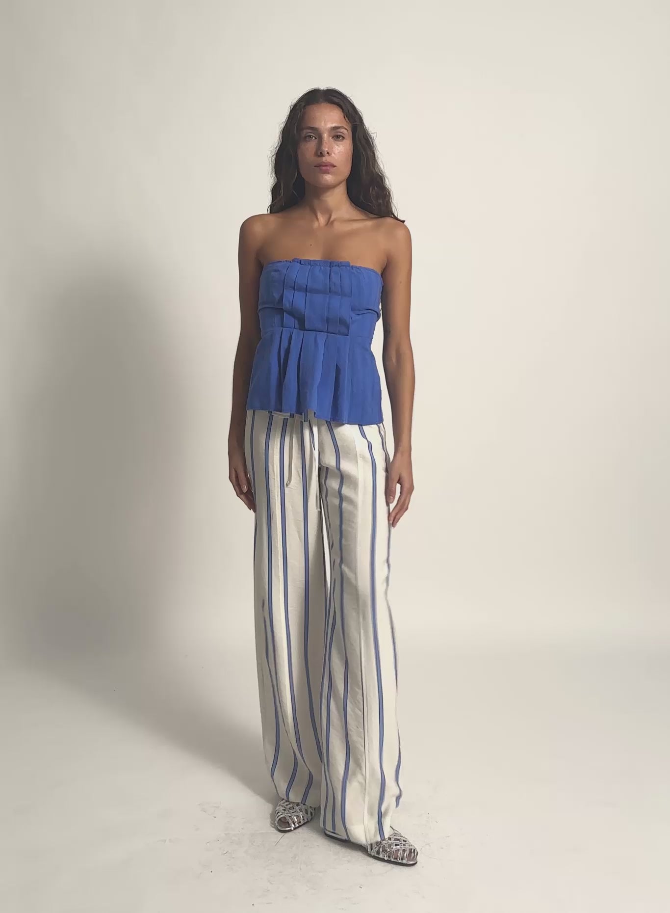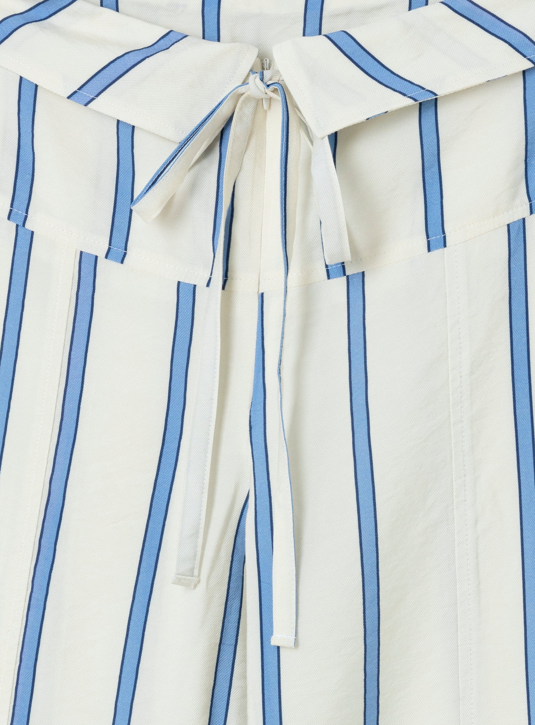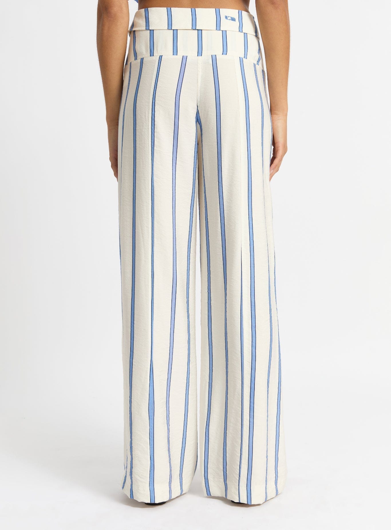 Mid-rise striped pants with a double waistband. Straight cut and relaxed fit for all-day comfort. Invisible front zipper with ribbon detail.