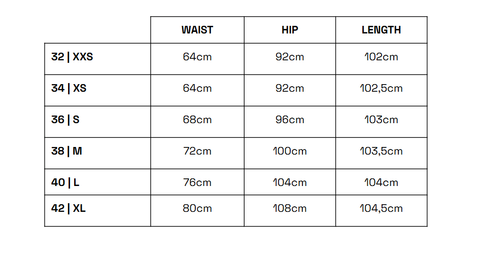 | EU SIZE | XXS | XS | S | M | L | XL |